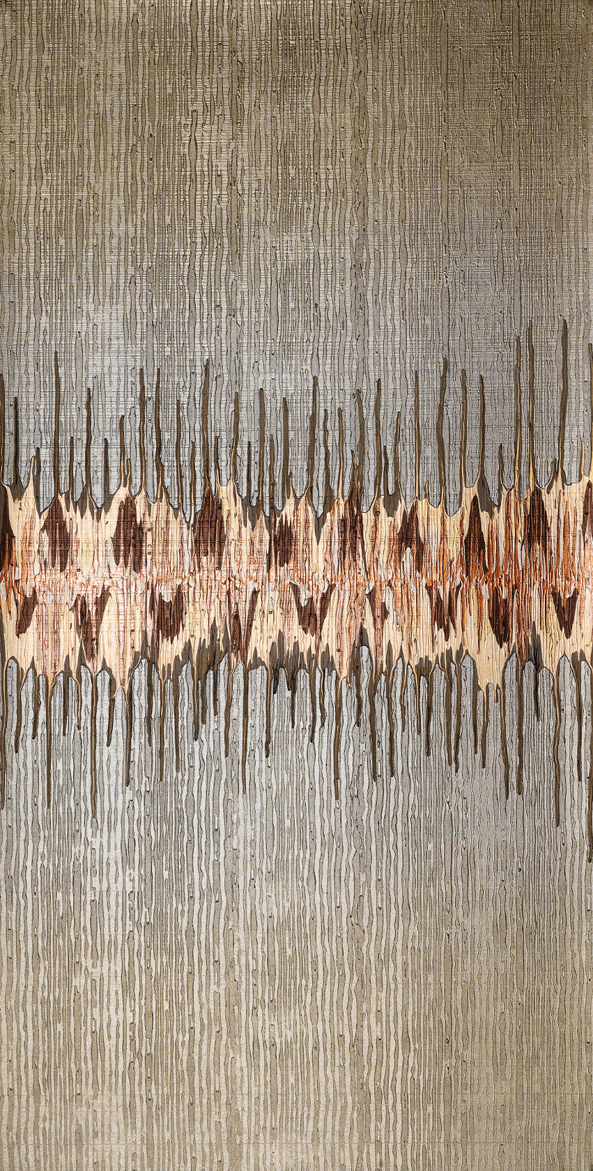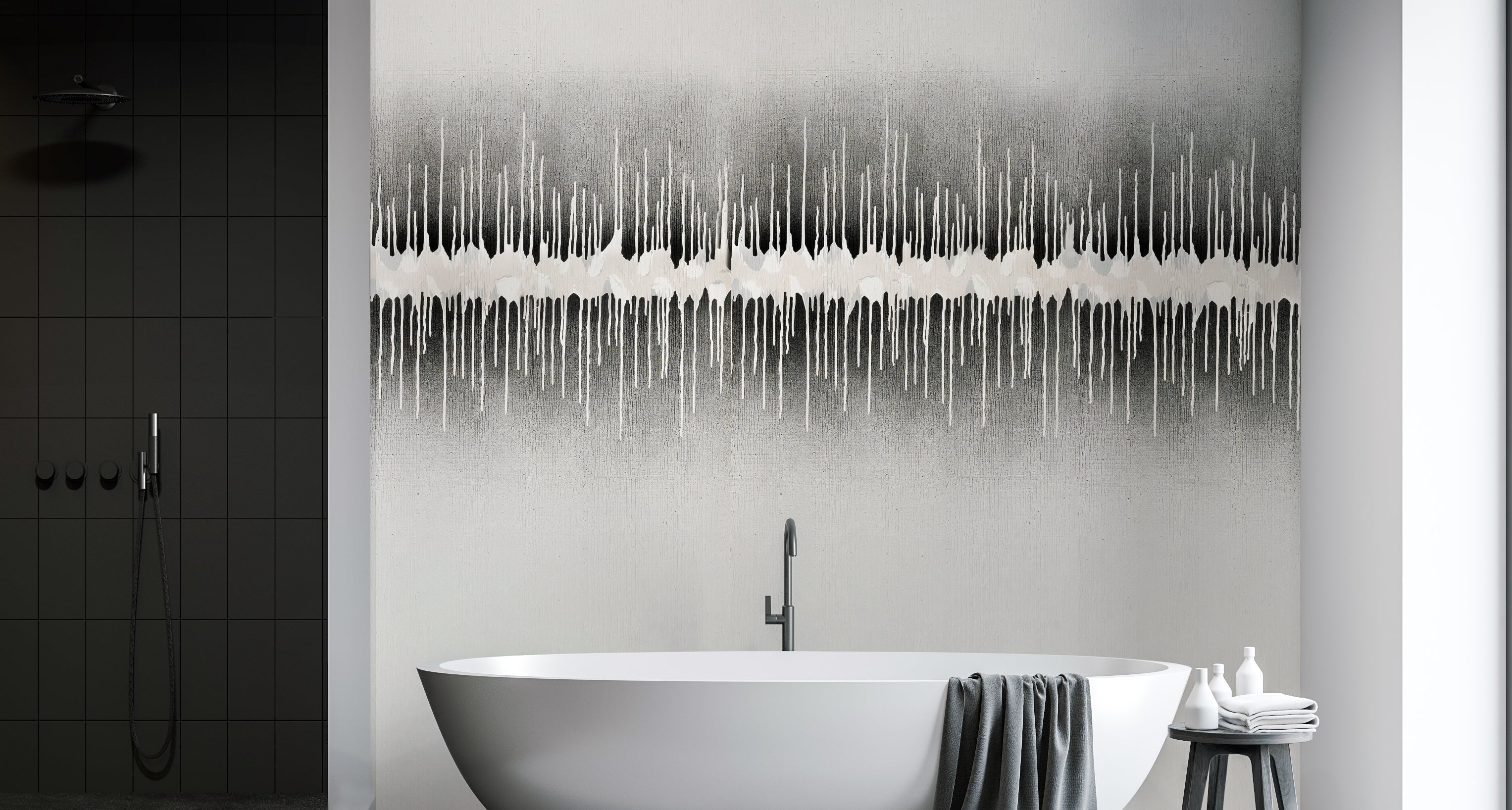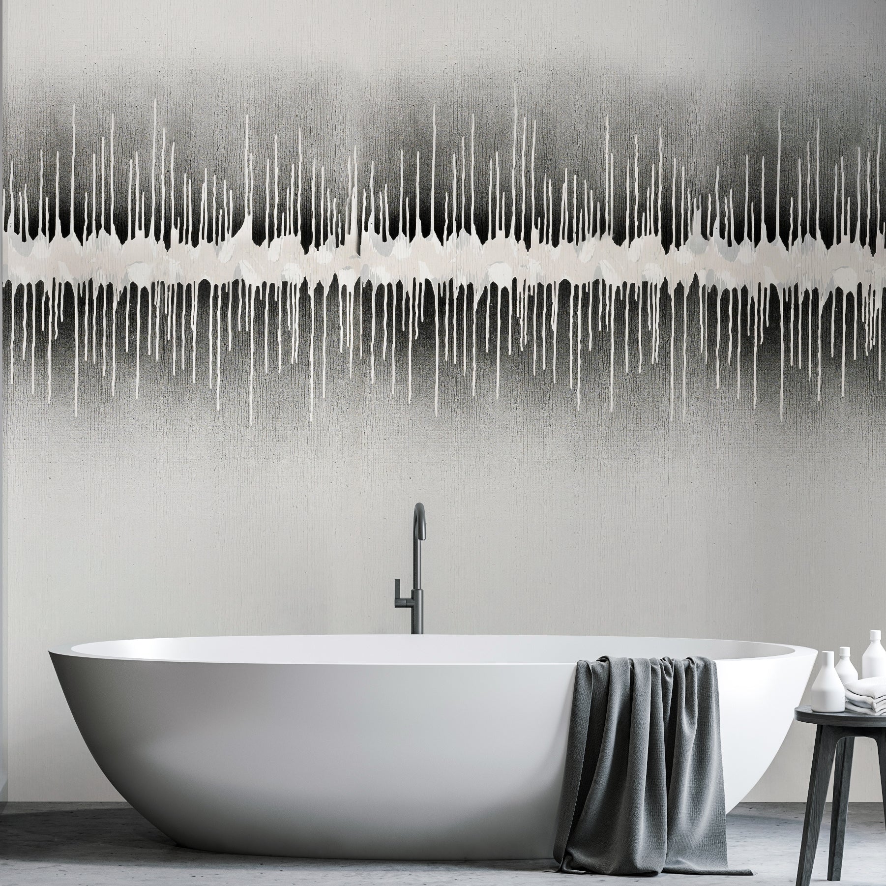 Repeat and Match: Drip design painted-to-order, generally centered on wall. Straight pattern match.