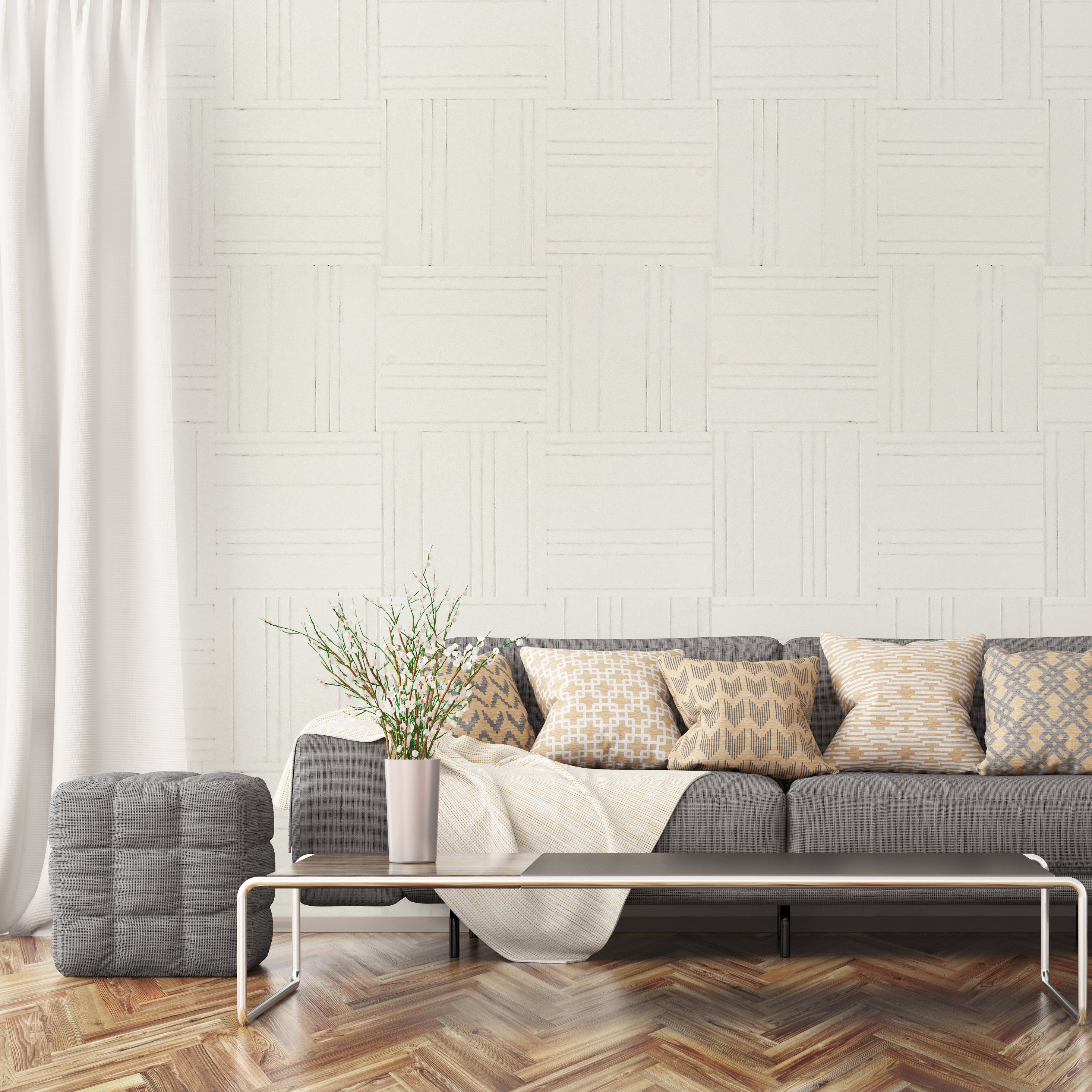 The straightforward, elegant textured minimalism of Broken Lines - Straight wallpaper Pattern is the tranquil answer to its noisy cousin. Interwoven linear lines evoke stability and meditative ease over soulful monotones.