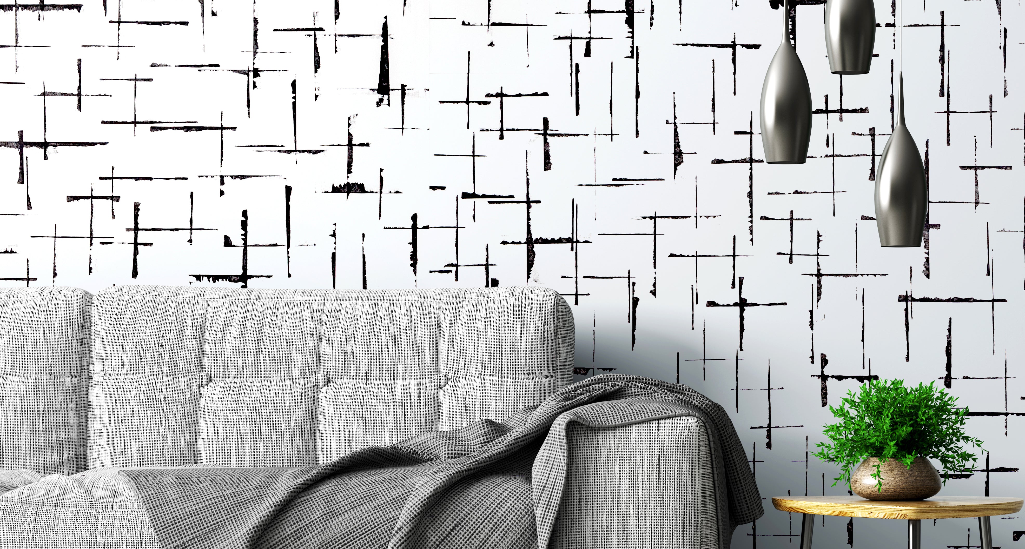 A study in handmade simplicity, Convergence features subtle recurring patterns inhabiting interlude of negative space. This wallpaper pattern exhibits deliberate and meticulous linear forms and explores the space between lights and darks, blacks and whites. All while projecting an air of serendipity.