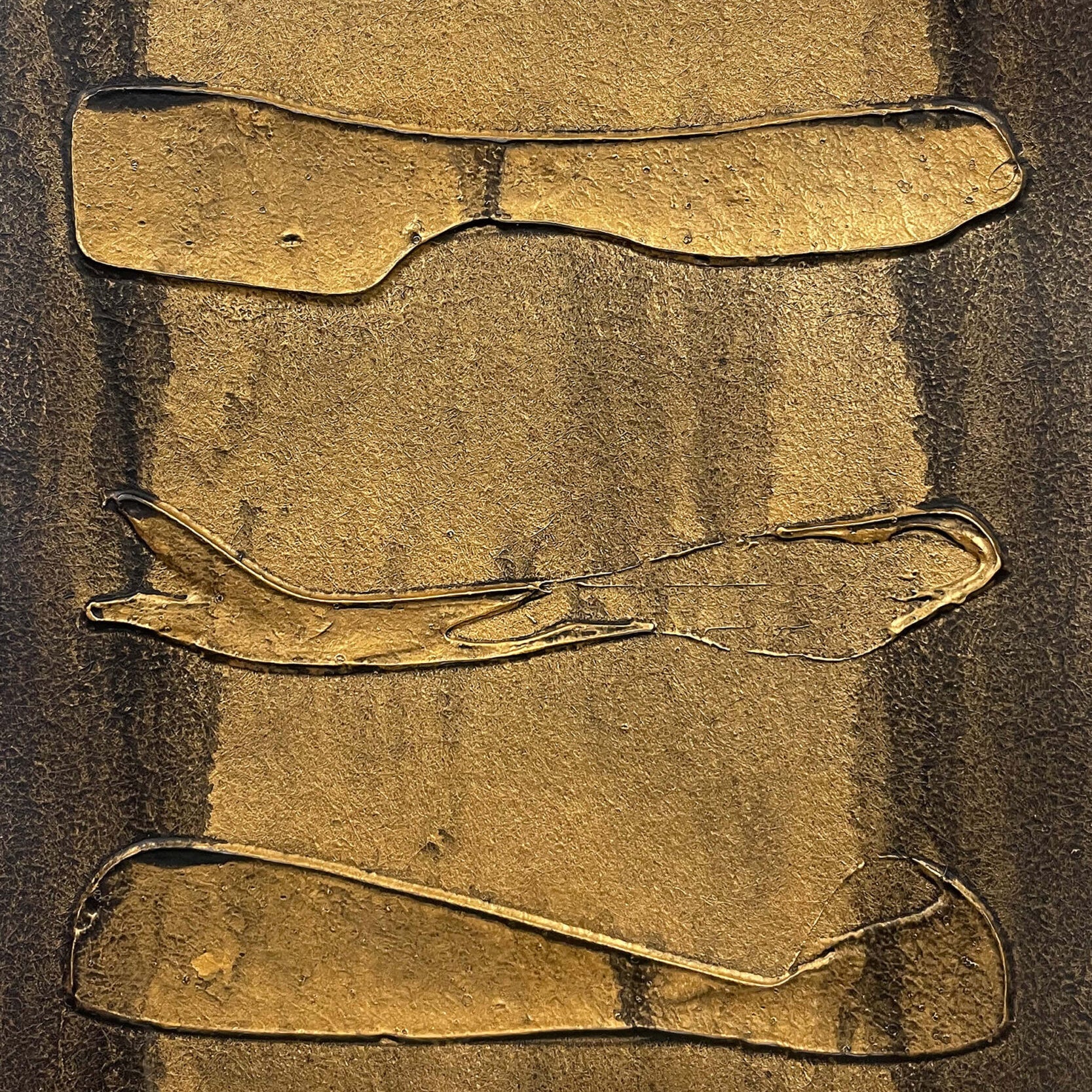 The handmade Gradiens Pattern features tidy columns of rough-textured shapes which create a fascinating bony ridge veiled in misted-on color. Darker color remnants pass and pool in the trenches of texture.