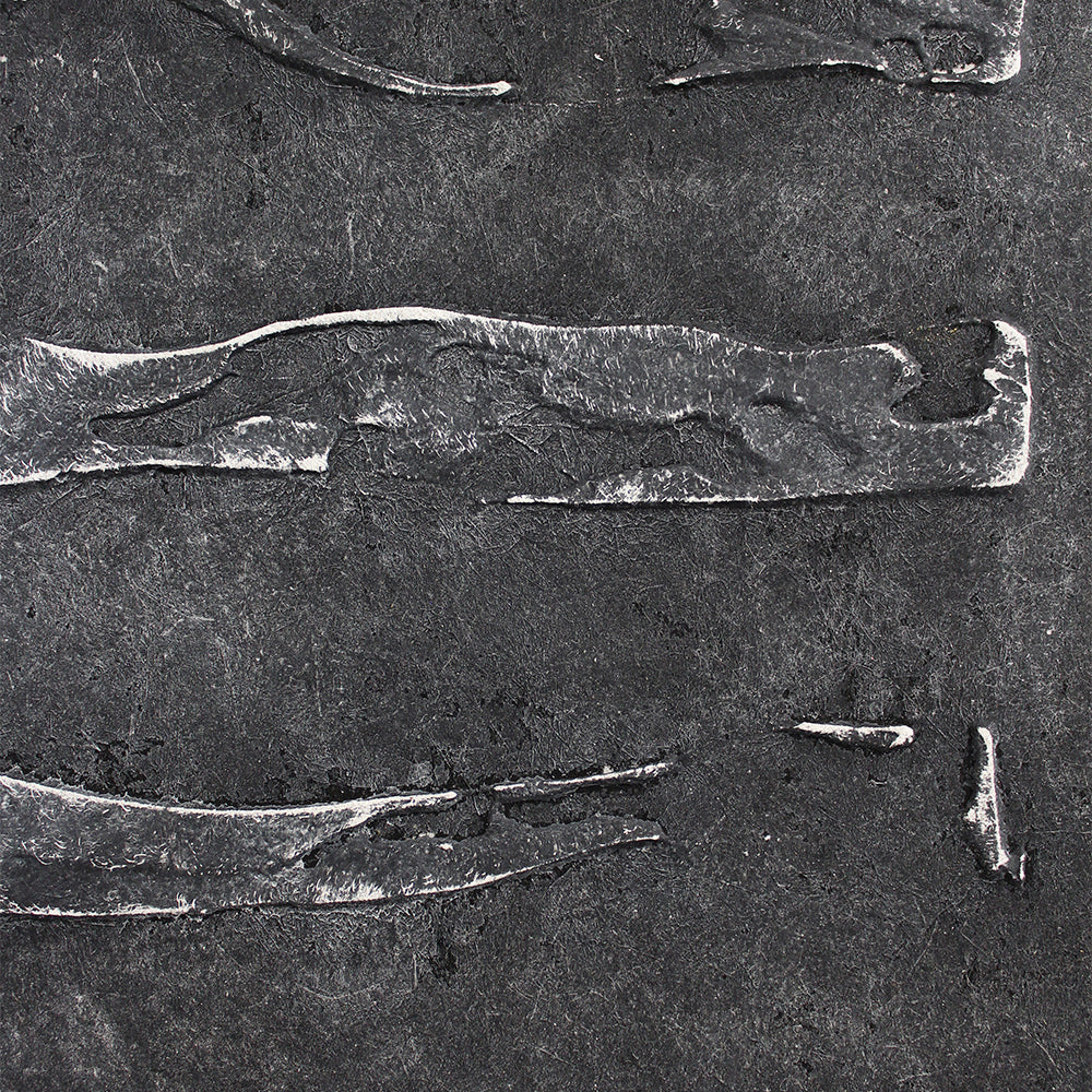 The handmade Gradiens Pattern features tidy columns of rough-textured shapes which create a fascinating bony ridge veiled in misted-on color. Darker color remnants pass and pool in the trenches of texture.