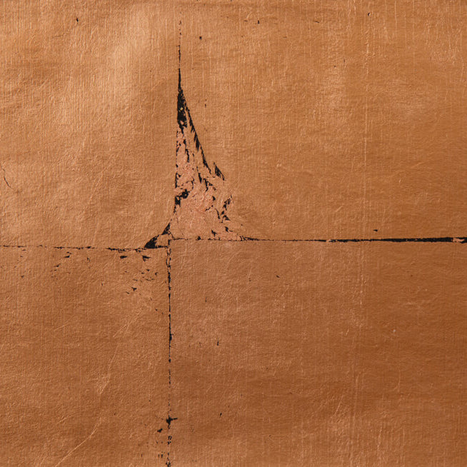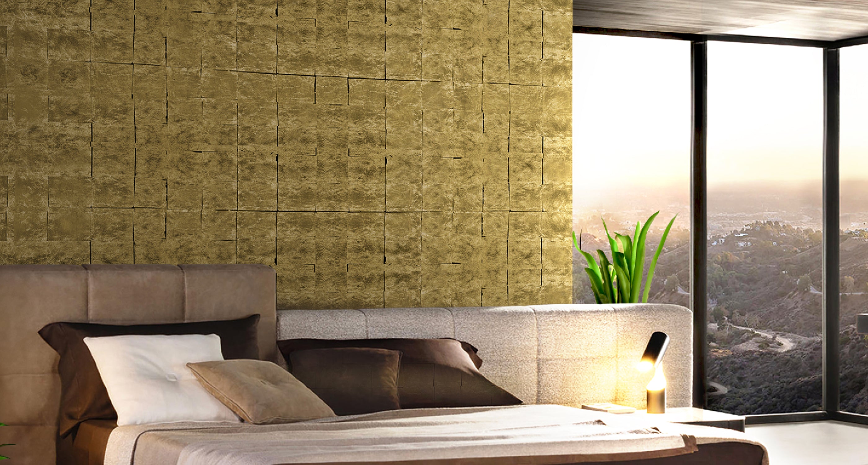 Gold or silver leaf wallpaper is overlaid in columns and rows to create a wall covering that takes your space beyond color and texture.