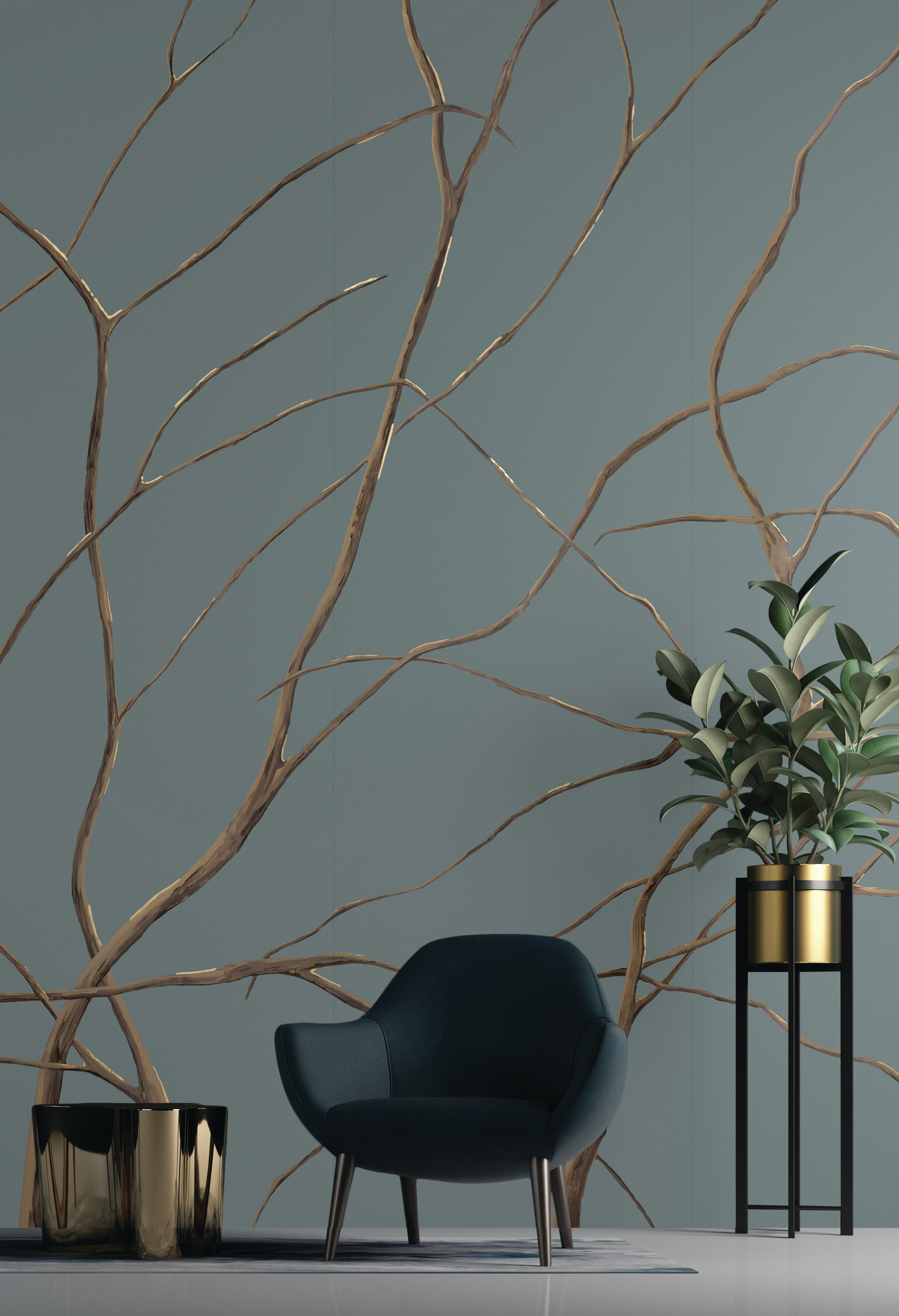 Pocono drifts across the wall like moonlit branches, whispering of quiet forests after rain. Its graceful lines breathe calm into a room, soft and romantic without trying. A mural for moments when you want the space to exhale.