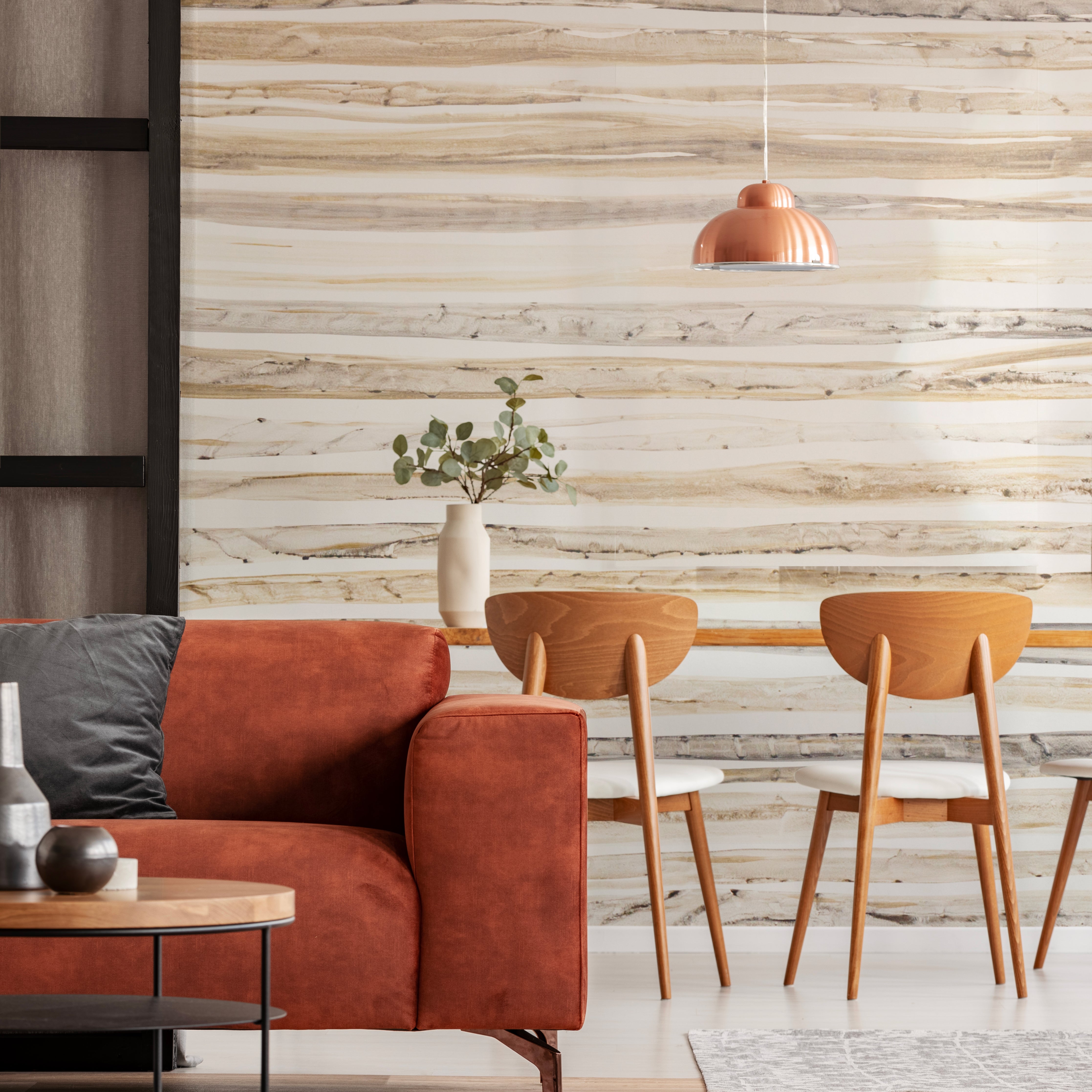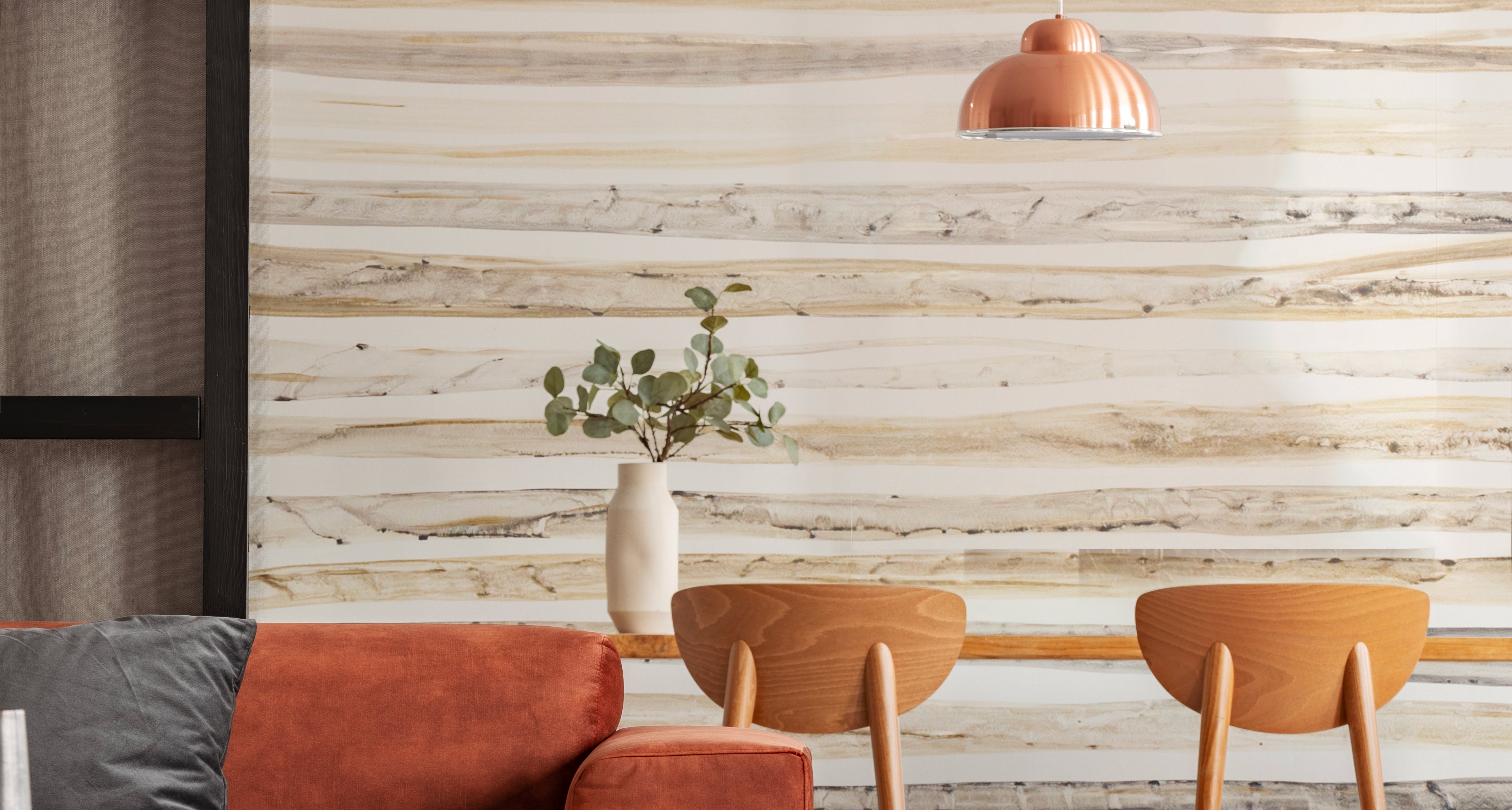 Rustic simplicity defines the Prismatic Pattern’s handcrafted wall coverings. Translucent, watery earth and sky tones streak across the wall, stacking subtle color variations and creating a gently linear background for your room.