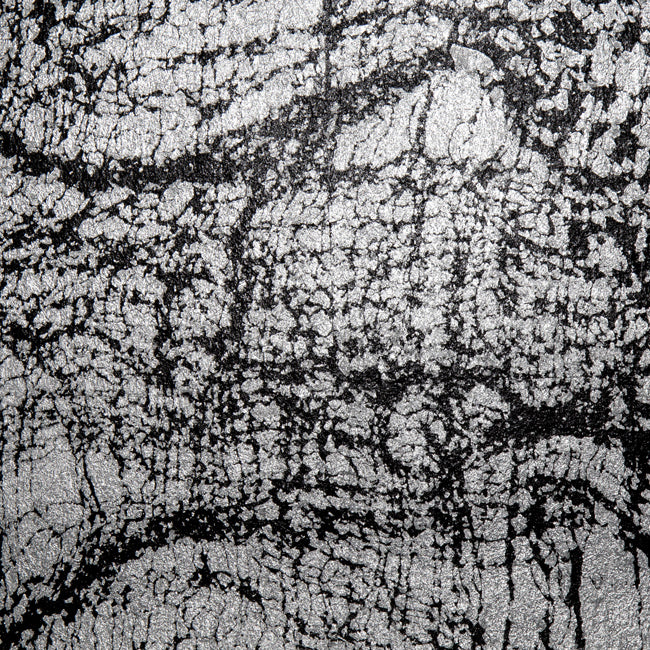 The Tide Pattern combines metallic leaf and monochrome palettes. This wallpaper creates a fascinating meshwork of bold color and luxurious silver or gold.