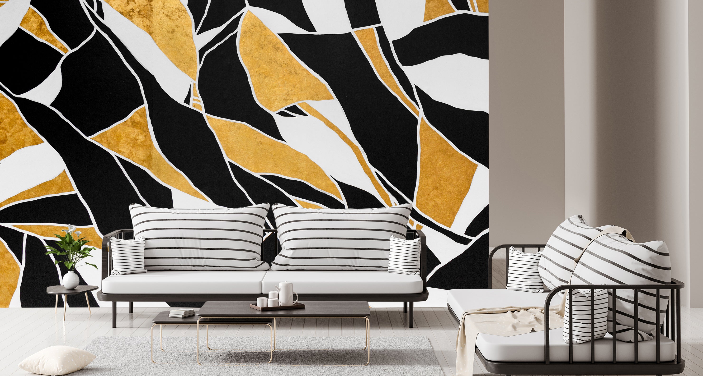 If you’re looking for a conversation piece, look no further than Valencia. This bold wall covering combines contemporary fluidity with modern minimalism to create a stunning metallic leafed mural.