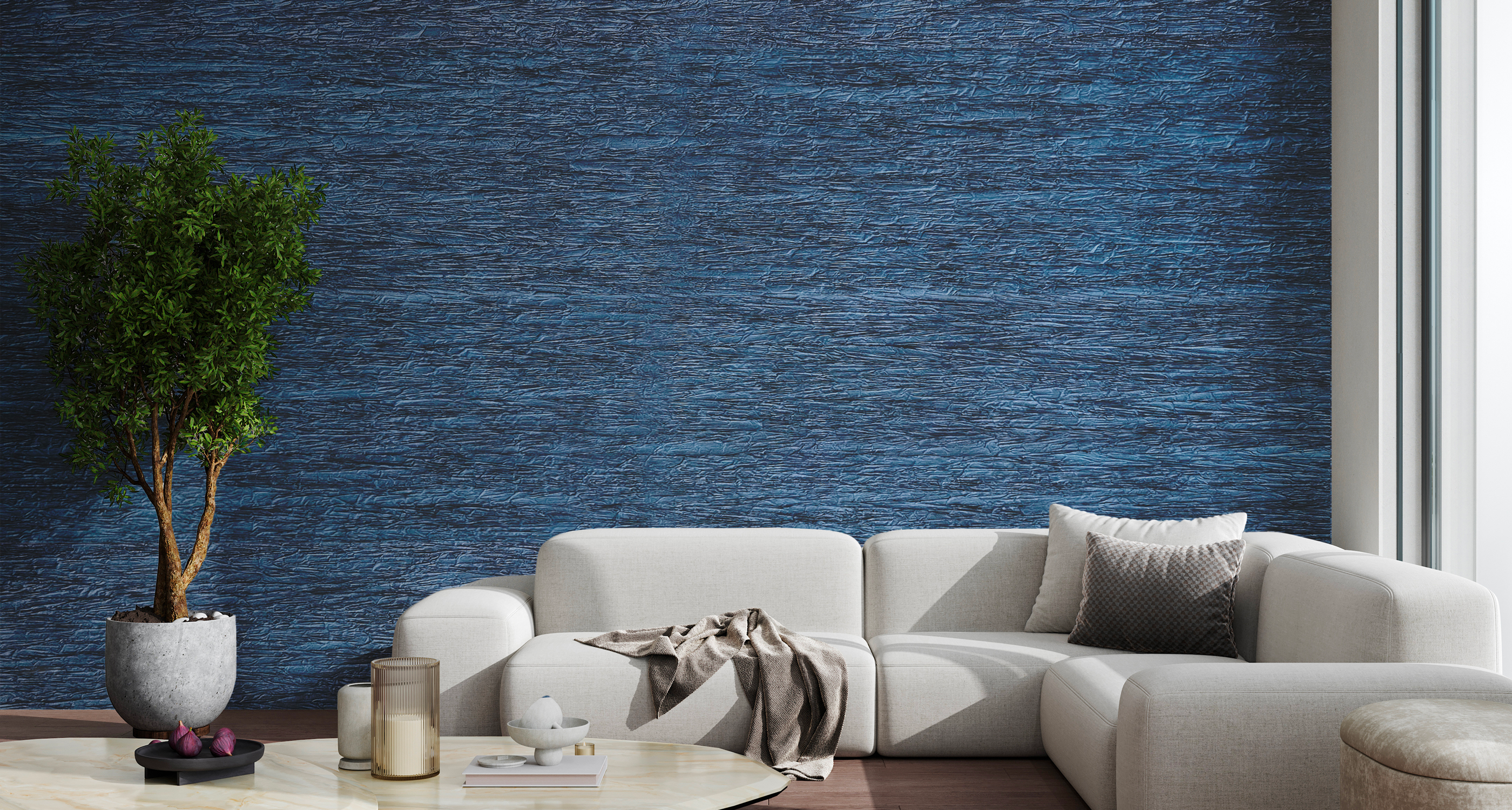An expression of liquid movement. The Waves Pattern features striking metallic textured wallcoverings which may conjure wet bark in a shady forest, the crispness of an icy river, or the luxuriant warmth of the sunlit sea.